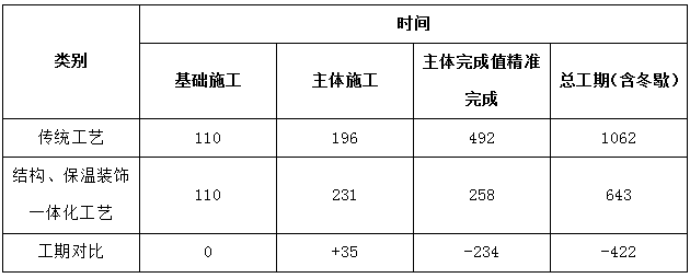表1結(jié)構(gòu)、保溫、裝飾一體化與傳統(tǒng)工藝工期對比