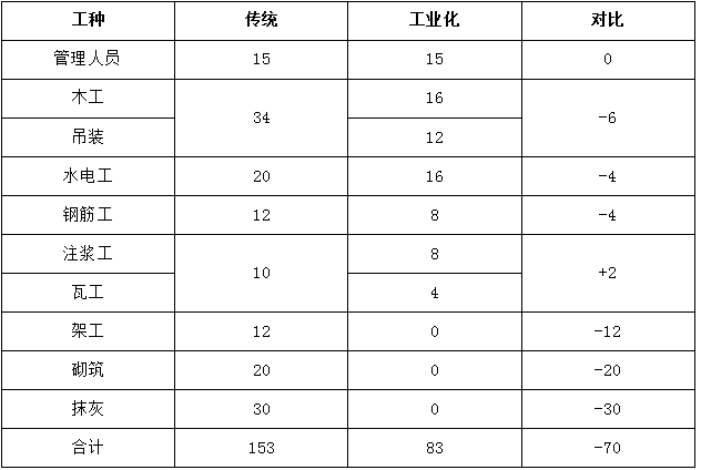 表2結(jié)構(gòu)、保溫、裝飾一體化與傳統(tǒng)工藝施工人數(shù)對比