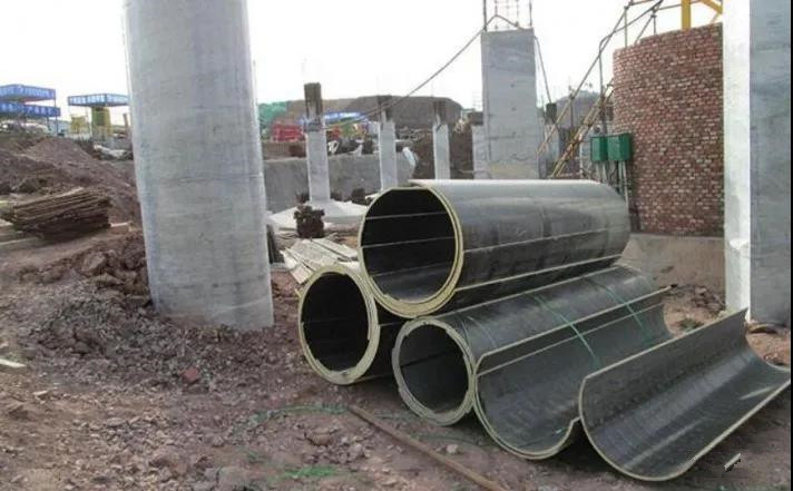 拆模流程:拆模時(shí),依次把加固在圓柱模板外面的鋼管、方木、鋼帶去除,此時(shí)圓柱模板自然脫模張開(kāi),如有個(gè)別沒(méi)有自然張開(kāi)的圓柱模板,只需要在凸凹槽接口位置用木條敲擊震動(dòng)一下,圓柱模板便可自然脫模(請(qǐng)嚴(yán)禁用工具撬開(kāi))。